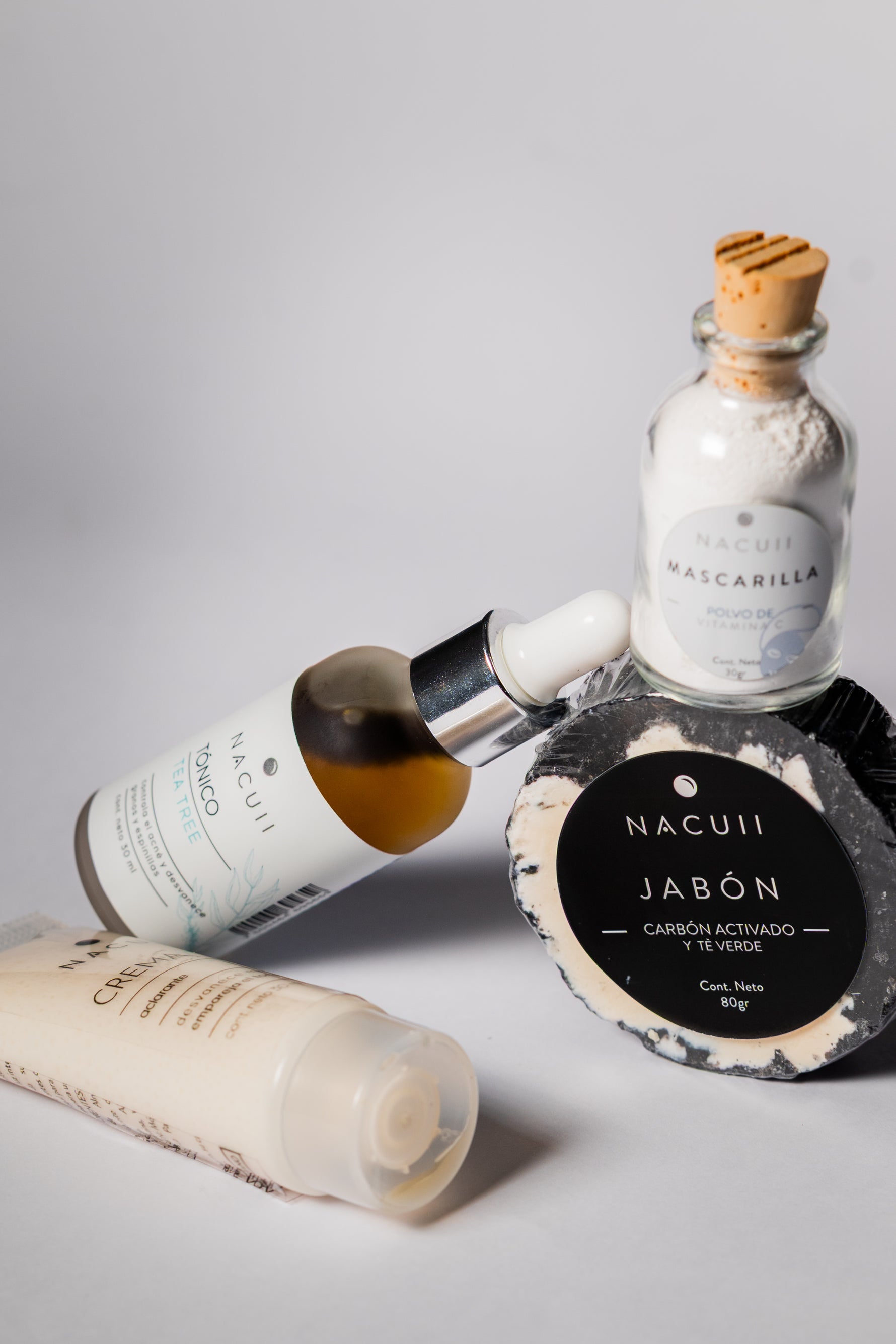 Este kit incluye productos con propiedades regeneradoras, aclarantes y cicatrizantes. Además de combatir el acné va disminuyendo las cicatrices y problemas relacionados, tales como manchas en la piel.